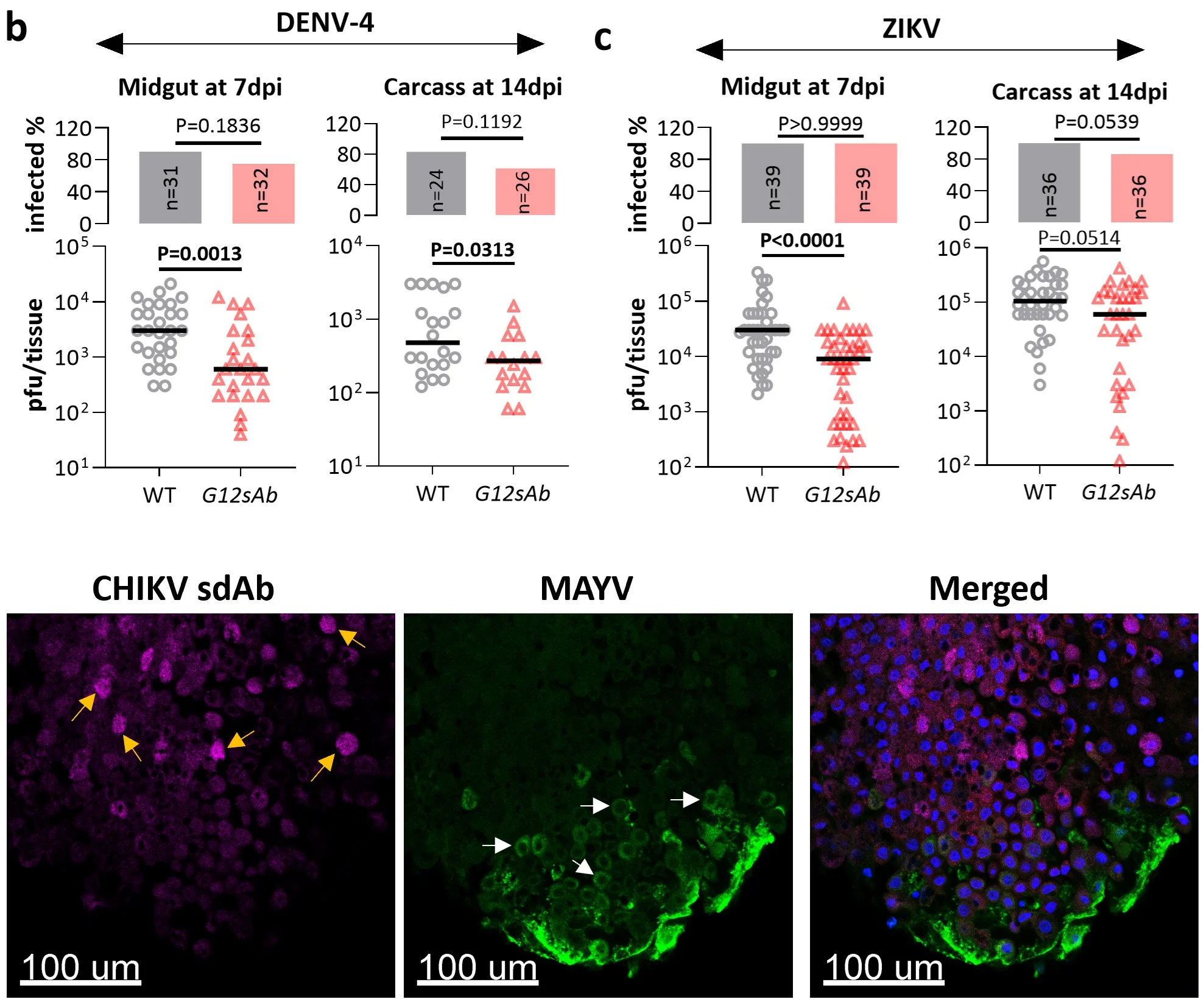 Dong S, Tavadia M, Dong QA, Dimopoulos G. (2025) Engineered antibody-mediated broad-spectrum suppression of human arboviruses in the Aedes aegypti vector. Commun Biol. 2025 May 7;8(1):709. doi: 10.1038/s42003-025-08133-5. PMID: 40335671; PMCID: PMC12059017.